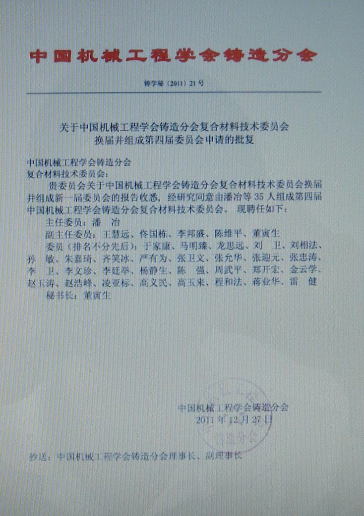 復(fù)合材料技術(shù)委員會年會通知[2013/10/29] 各位委員: 您們好! 復(fù)合材料技術(shù)委員會定于2013年8月14~17日在甘肅蘭州第八屆全國鑄造復(fù)合材料學(xué)術(shù)會議期間召開復(fù)合材料技術(shù)委員會工作會議,請各位委員按時參會。謝謝! (本次會議的相關(guān)安排已于5月23日和7月22日兩次發(fā)送電子郵件進行通知,需要的委員可以查收您的信箱。如未收到郵件,請與我聯(lián)系。) 附件是新一屆復(fù)合材料技術(shù)委員會的名單,請各位委員注意查收。 ![]() 相關(guān)新聞![]() |